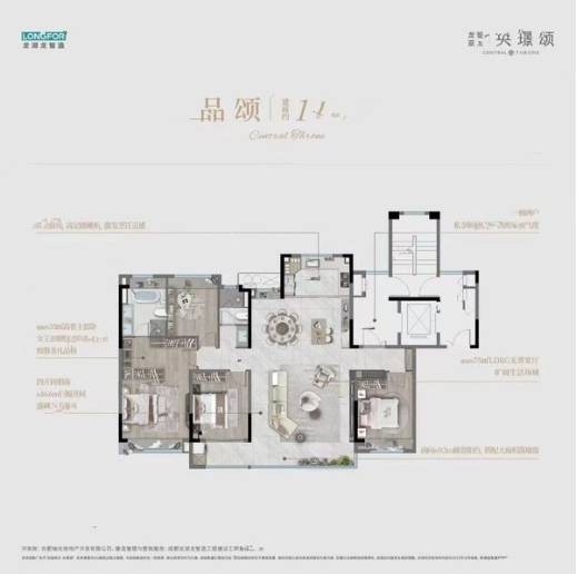 龙湖亚伦央璟颂提供了多样的户型选择,满足不同家庭的需求。建筑面积约143-223㎡的低密洋房大平层,私梯入户设计让业主尽享尊贵生活。270度环幕视野,让业主在家中就能欣赏城市的繁华与美丽。