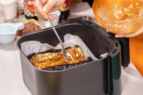 懒人必备——锡纸盘、硅油纸盘:使用锡纸盘或硅油纸盘可以防止食物粘在空气炸锅的烤篮上,方便清洁,也能更好地控制油脂摄入。