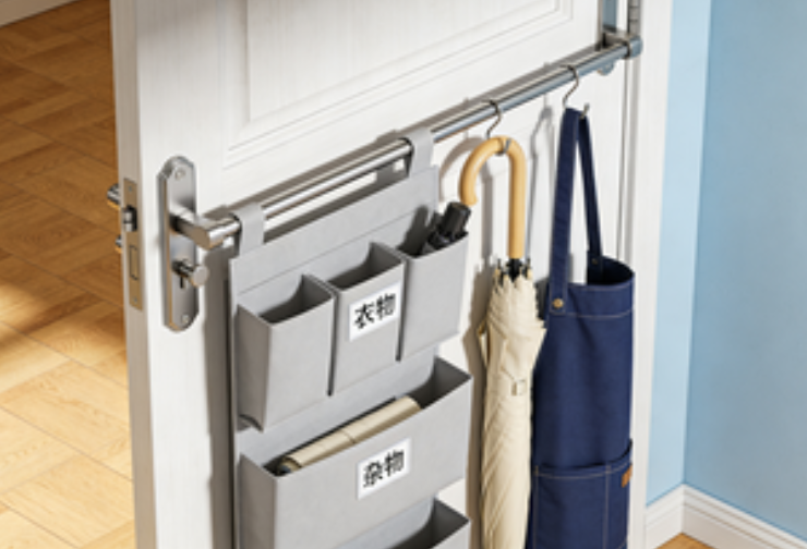 3). 门后不浪费——贴挂杆、置物架,推拉门侧面贴磁吸收纳盒,隐形实用。
