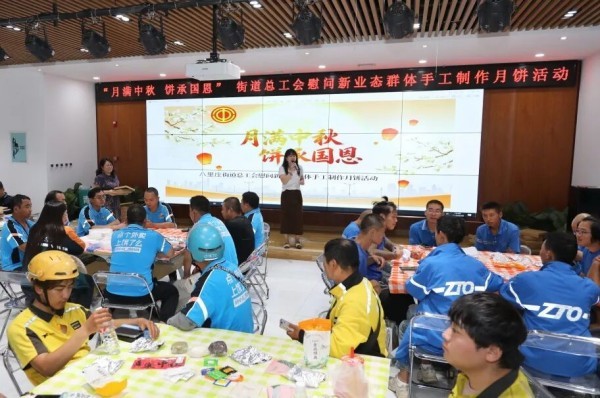 “双节”前夕,八里庄街道总工会聚焦新就业群体需求,启动“月满中秋饼承国恩”慰问活动。来自美团、饿了么、盒马鲜生、顺丰快递、中通快递等平台的近50名快递员、外卖骑手齐聚一堂,共同体验冰皮月饼制作,在揉面、包馅、压模的过程中感受节日氛围。活动现场还特设志愿服务专区,中医义诊团队为新就业群体把脉问诊、答疑解惑,公益理发师则根据需求修剪发型,贴心服务赢得一致好评。活动尾声,街道党群工作办公室为每位参与者送上慰问品,向他们风雨无阻保障城市运转的付出致以敬意。