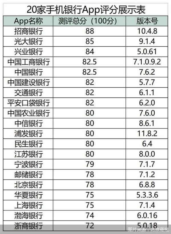 为此,北京商报记者选取行业内极具代表性的20家银行,在10月24日和10月30日期间集中对其旗下手机银行App进行测评,试图通过操作体验、产品功能、人性化关怀和创新发展四大维度的分析,总结各家银行手机银行App的共性和个性、优势与不足,并提出建议供业内参考和借鉴。