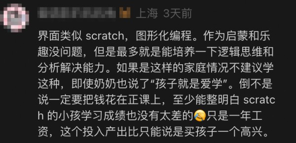 这个钱用来辅导语数英,可能还对孩子升学有帮助,可让他们砸钱在所谓的“编程”上,就是对贫困家庭赤裸裸的收割,这不是丧良心吗?