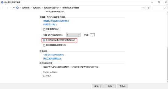 我们可以在【控制面板-易用性-设置中心】中勾选“关闭所有不必要的动画”选项,减少不必要的能耗。