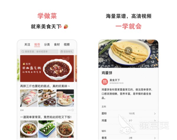 这是短视频教程类的app,高效呈现所有材料,厨房用具等,让用户一目了然。里面有详细的图文菜谱,关键步骤还会有详细的放出错小贴士,方便想要学做饭的朋友跟做。