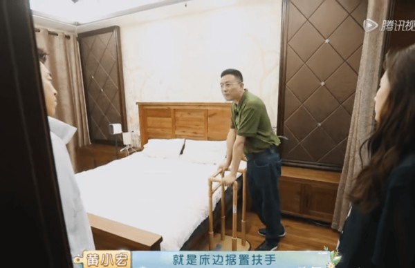 床边扶手--卧室的床边也建议安置一个据置扶手,供老人上下床时借力,床的高度不宜过高,以方便安全为主。
