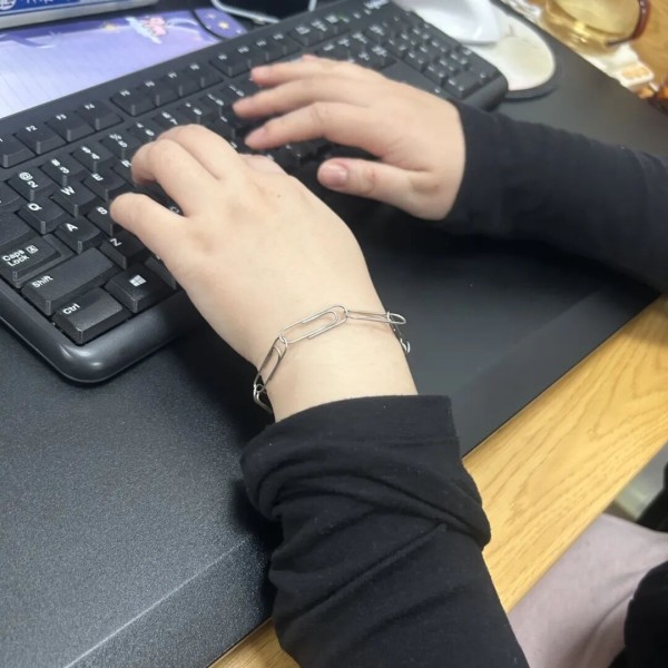 “用曲别针串起一个手链戴在手上,这个防静电方法在网上还挺火的!就来试一试。”