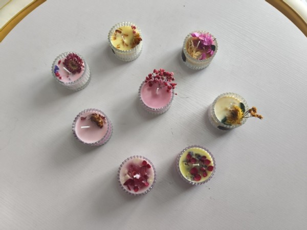 活动现场温馨雅致,志愿者学生热情细致地为老师们讲解香薰蜡烛的文化背景、制作流程与技巧要领。从蜡基融化、香氛调配,到烛芯固定、干花构图,每一个步骤都融入了巧思与美感。在学生的协助下,女职工们化身“香氛设计师”,用心调和出独属于自己的芬芳语言,精心构思干花在蜡面中的点缀姿态,将个人审美与生活意趣凝于一瓶一器之中。随着蜡液缓缓凝固,一份份独具匠心的香薰蜡烛作品逐渐成型,映照出她们对生活的热爱与对美好事物的执着追求。