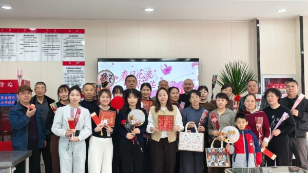 活动现场墨香四溢,笑语盈盈。在书法送祝福环节,特邀请博乐市书法协会闵疆庆老师挥毫泼墨,在宣纸上写下美好祝愿,笔锋流转间尽显传统文化的魅力。随后的手工制作区更是热闹非凡:手提包制作台前,大家巧手翻飞,将普通素包搭配装饰,变身时尚单品;福字摆台制作中,金色的福字拓片装裱入框,寄托纳福迎祥的美好寓意;节气挂件区域,干花流苏与木片竹环相映成趣,串起春日灵动;花扇制作现场,干花粘贴与色彩搭配创意纷呈,团扇轻摇间尽显温婉气质。整场活动在指尖流转中洋溢着创作的热情与节日的喜悦。