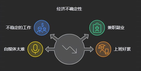 比如有工作的人也在整副业求稳,担心那天走的是自己,或想提升一下生活质量,没有工作的自由职业也有属于自己的经济压力,而且很多自由职业的人都会选择做自媒体。