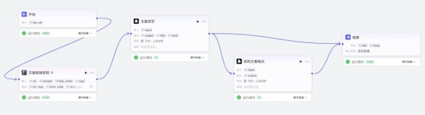 第五个节点结束,接收文案改写中的 title 作为标题,接收修改文案格式中的 body 为内容。
