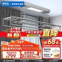 邦先生(Mr.Bond)电动晾衣架M50S,现售价799元,直降200元!该款晾衣架在M50S的基础上新增了天猫精灵语音控制,智能语音晾晒,让您轻松享受智能生活。机身轻薄时尚简约,6根多功能母婴杆,4根晾晒杆,采用铝合金材质一体成型,抗蚀性、硬度强劲,性能稳定可靠。LED大屏照明,代替阳台灯,无线遥控最远可达30米。整机尺寸:480mm*2200mm。