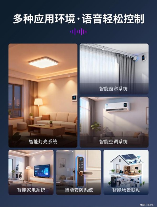 -全屋设备联动控制:这是最普及的场景,可语音控制灯光(“打开客厅主灯,亮度调至80%”)、家电(“启动空调,制冷模式24℃”“关闭洗衣机”)、门窗(“关闭阳台落地窗”“降下电动窗帘”)等,实现全屋智能化协同。