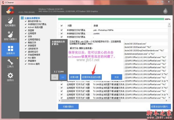7、保存完以后,您可以放心的点击ccleaner修复所有选定的问题了。