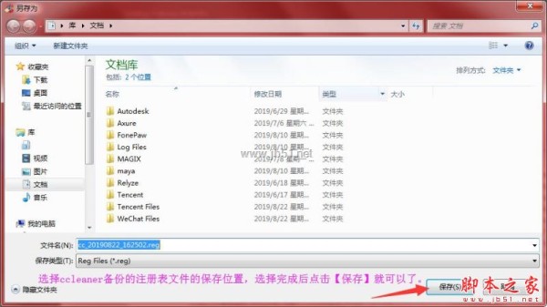 6、选择ccleaner备份的注册表文件的保存位置,选择完成后点击【保存】就可以了。