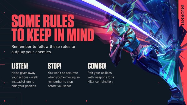 Now that you know the basics, there are a few other details you’ll need to remember that’ll help you execute your plan. Throughout each round, ask yourself: ‘Do I want the enemies to hear me run up or should I walk?’ ‘Can I use an ability to help me achieve my next goal?’ And when you see an enemy, stay calm. Stop moving before shooting to be more accurate.