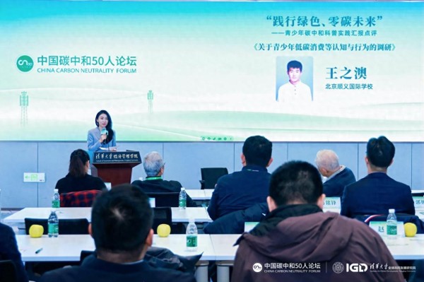 青少年是未来实现碳中和目标的中坚力量,青少年碳中和实践关乎未来、意义重大。为深入践行“双碳”战略,提升青少年生态文明素养与实践创新能力,中国碳中和五十人论坛在2024年大会 “践行绿色、零碳未来”——青少年碳中和科普实践汇报点评环节,邀请了来自全国的青少年代表展示了他们的碳中和实践案例,王之澳同学作为来自北京的唯一代表参与了汇报。中国碳中和五十人论坛联席主席、中国工程院院士、“科普中国十大科学传播人物”、清华大学教授金涌在会上对汇报的案例进行逐一点评,并勉励青少年努力学习,学科学、爱科学,为国家进步发展和实现碳中和作出贡献。