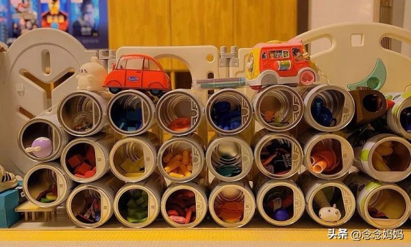 可以把小孩子玩的小玩具,统一归纳放进奶粉罐里,比如,积木,小拼图,小卡片等,即可以防止玩具丢失,还可以锻炼孩子收纳整理的能力。