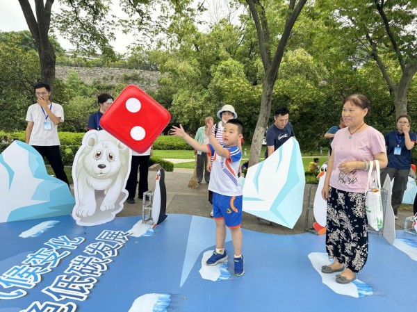 冰川融化对人类会有不利影响吗?我们怎么才能保护冰川?在选手们紧张比赛的同时,主持人时不时抛出一个知识小问答帮助大家离终点更近一步。“太棒了, 你成功守卫冰川了!我们以后也要节水节电,保护好地球家园。”活动结束后,一位家长对参赛的小朋友说道。在一片欢声笑语中,寻绿石头城活动成功落下帷幕。