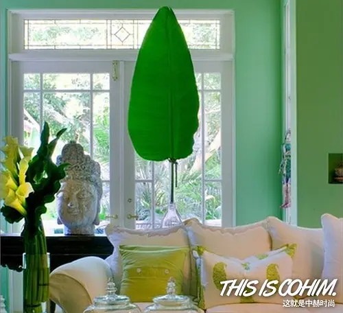 一片巨型的绿叶就能给家居空间带来如此之大的变化,是不是很奇妙?这片鹤望兰叶子直观的为家居空间添加了一抹童话色彩。