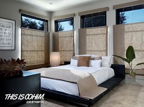 禅式卧房经过几片鹤望兰叶的装点,顺便变成了一个郊外度假胜地,寥寥几片叶子,既不像一整绿植那样庞大,也足够让人浮现起在棕榈树下小憩的情景。