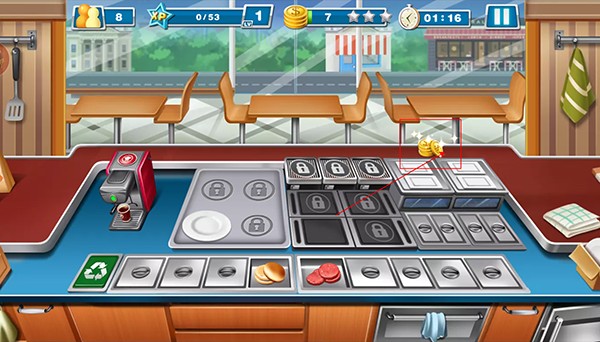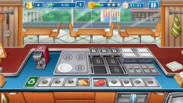3、玩家需要在规定的时间内完成美食烹饪,呈现在顾客们的面前。