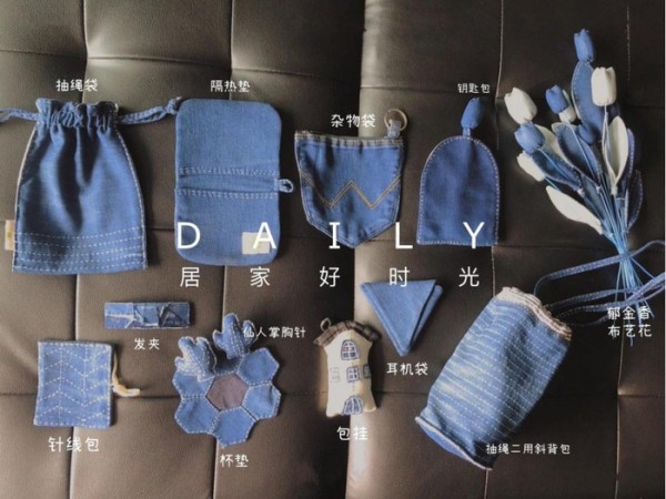 旧牛仔裤改造收纳袋