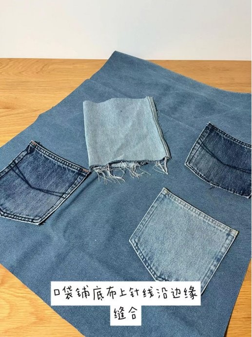 第二步:口袋铺底布针线沿边缘缝合