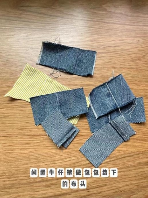 第二步:将牛仔裤、衣服布料随意剪成想要的形状大小