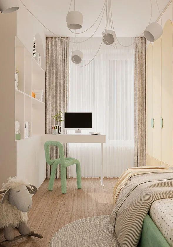 粉色风格的女孩房,没有主流粉色的甜腻,却多了一丝阳光和温馨。整个空间弥散着清安、快乐的气息,给人带来一份直抵心灵的美好。