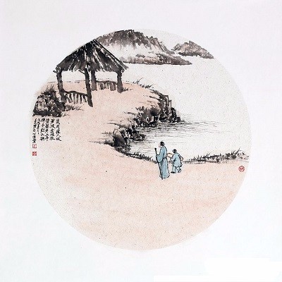 书房装饰画的色彩一般不适宜过于耀目,但也不宜过于昏暗,淡绿、浅棕、米白等柔和色调的色彩较为适合。吴大恺这几幅古意山水,寥寥几笔的景致,逍遥自在的人物,情与景完美融合,在这种融合中,表现出一种十分鲜明的、可给人以启示和想象的自然景象,同时又包含着耐人寻味的意蕴。从中我们感受到的是一个作为性情中人的情感丰沛的画家,因此也具有一种撩人心魄的韵致。装饰书房,陶冶情操、修身养性。
