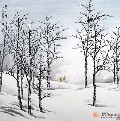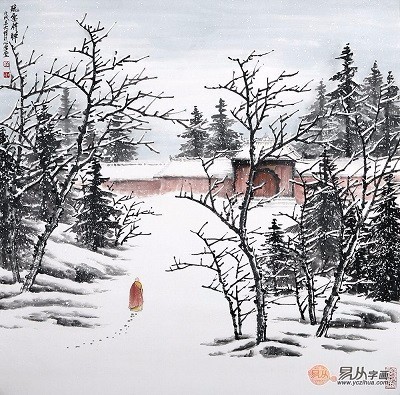 2.适合挂在书房的装饰画:银装素裹雪景斗方画