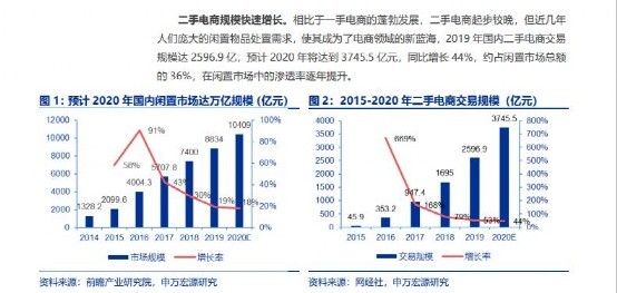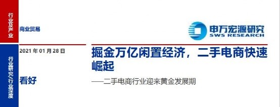 2021年1月底,第三方机构申万宏源(000166,股吧)发布了一份名为《掘金万亿闲置经济,二手电商快速崛起》的研究报告(以下简称申万宏源研报)。