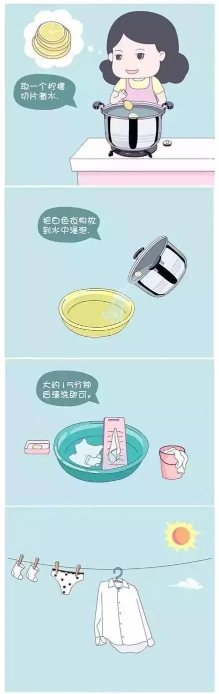 取一片柠檬煮水,把衣物放水中浸泡,然后再清洗就可以啦。