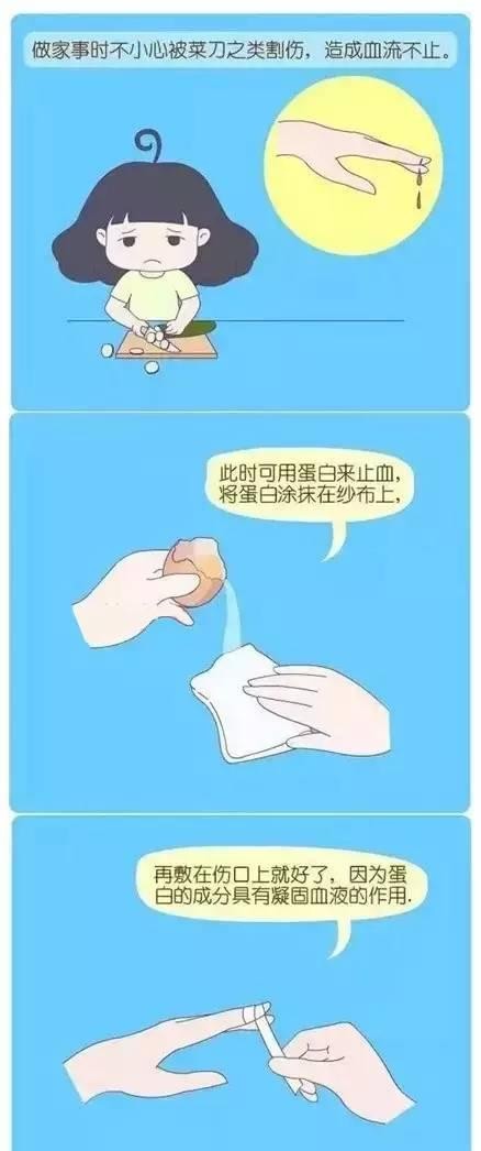 献给容易受伤的你,血流不止的时候就用蛋白涂在止血布上,然后敷在伤口上就可以轻松止血了。因为蛋白有凝固血液的作用啦。