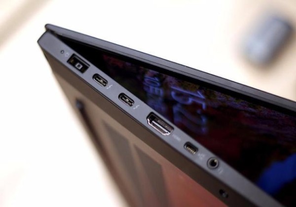 不要以为仅此而已, X1隐士的另一侧更是超前的加入了两个Thunderbolt 3接口。兼容Type-C规格,目前Type-C接口大有取代传统USB接口的趋势,然后还有一个HDMI接口,方便连接大屏,同时受到笔记本厚度限制,网线接口被压缩成了mini以太网接口。为了方便做视频时进行监听,3.5mm的耳机接口也得以保留。