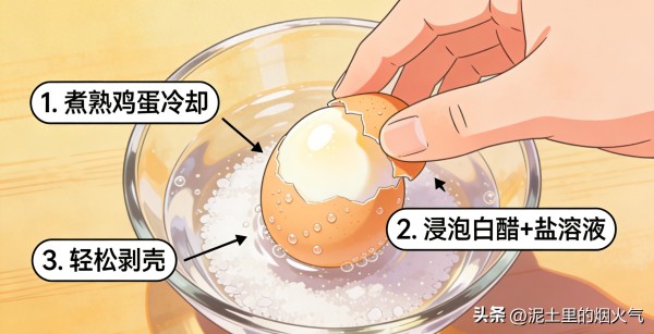 煮鸡蛋剥壳那个费劲啊,抠得坑坑洼洼的,好好一个蛋毁得不像样,教你个绝的,鸡蛋冷水下锅,顺手扔一勺白醋一勺盐进去,煮好了立马捞出来泡凉水,等个几分钟,轻轻一磕,那蛋壳自己就往下掉,剥出来光滑滑的,我现在次次这么干,再也不受那气了。