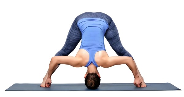 这个动作是个深度的前屈体式,能拉伸你的腿部和背部。站直,双脚分开,身体向前倾,双手可以触地或者抱住脚踝。