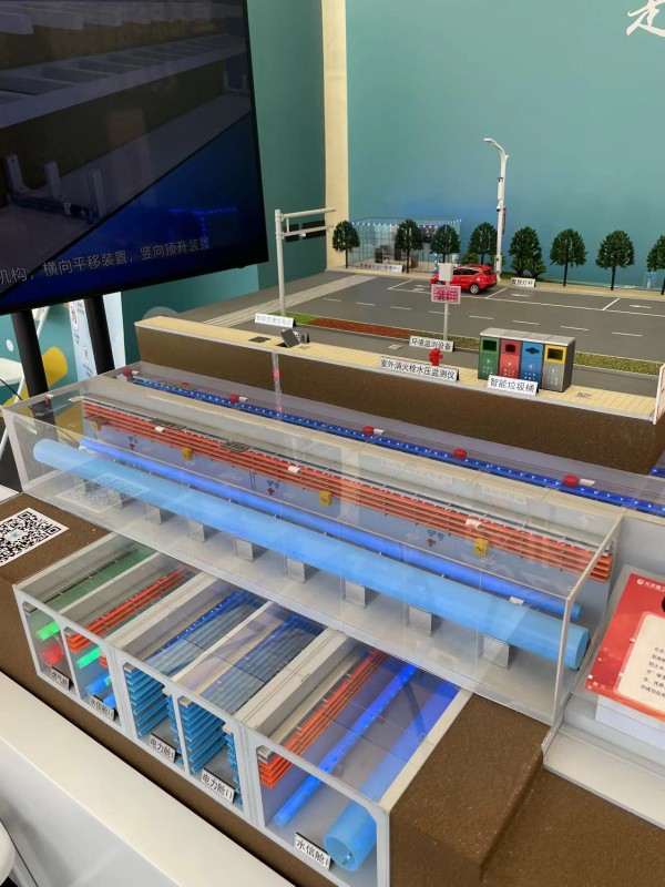 当你乘车奔驰在平坦的路面上时,有没有想过在脚下十米的地下,有一个隐秘而忙碌的世界?在科技周会场的“高精度预制综合管廊自动运载装配”展位,一座精致的模型将城市地下的综合管廊清晰地展现在游客面前。