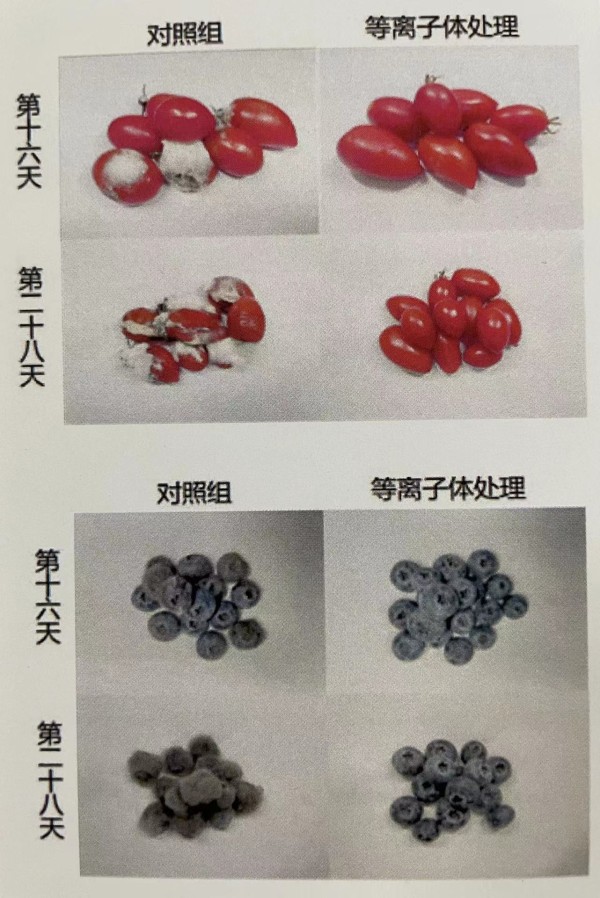 等离子体技术的杀菌保鲜效果有多神奇?试验证明,使用等离子体技术进行微生物消杀后,蔬果的保鲜效果能达到传统技术的2-5倍,如圣女果、蓝莓等经过28天的存放依然很新鲜;而部分农药经过此项技术放电处理5分钟,即可去除90%以上,相信它可以成为食品安全领域的重要助力。