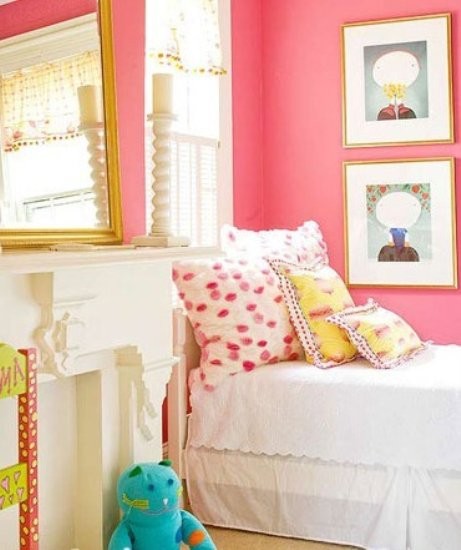 卧室墙面大量涂刷了具有亲和力的粉色调,而所有的饰品全部都是同色系的花案,这些再寻常不过的布艺软装进行搭配带来了让人惊艳的细腻感觉,没有过分的随意运用,却是营造出了粉色最温和亲近的性格。
