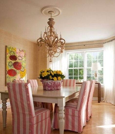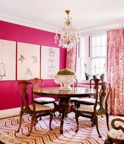 假日里蜗居用餐的机会增多,平凡的餐厅也需运用更多的新鲜元素,例如花朵和双色条纹图案。它们不仅让人食欲大振,和各种色彩餐具相互搭配,还令餐厅呈现出充满乐趣的活泼气氛。活泼的艳粉色,明亮而跳跃的效果,引导着欢愉的用餐节奏。