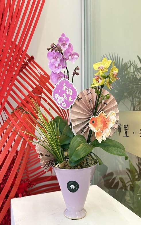 2. 参与者使用工会提供的花材(蝴蝶兰、配花、特色花盆及新年主题饰品等),自主创作新年花礼作品;