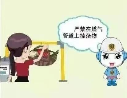 在厨房洗菜做饭时,总有人习惯性地把一些零碎物品和抹布等挂在管道上,这是非常不可取的。燃气管道上悬挂物品,容易造成管道变形、断裂、接口松动等现象,导致漏气。