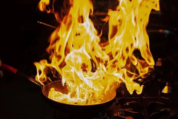 炒菜时油锅起火,有的人会试图浇水灭火。但这样不仅不能灭火,还可能导致热油爆燃。