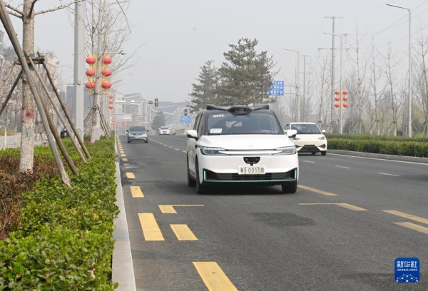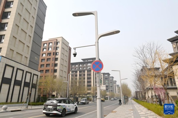 一辆无人驾驶网约车在雄安新区容东片区街道上行驶(3月26日摄)。