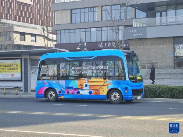车路协同自动驾驶巴士在雄安新区容东片区街道上行驶(3月20日摄)。
