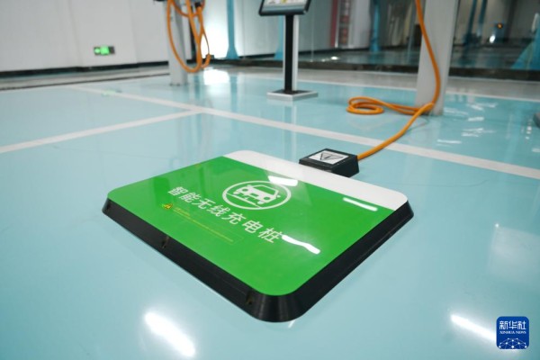 这是雄安新区剧村变电站智慧充电区的电动汽车智能无线充电桩(3月25日摄)。