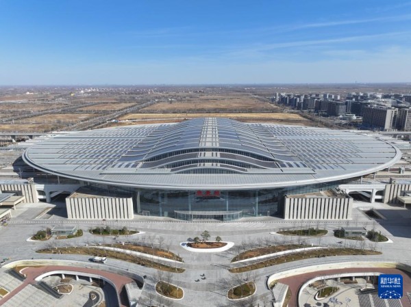 这是京雄城际铁路雄安站(3月18日摄,无人机照片)。京雄城际铁路雄安站站顶分布式光伏电站总装机容量6000千瓦,站顶铺设1.77万块、4.2万平方米多晶硅光伏组件,电站采用自发自用、余电上网模式,自2020年12月正式并网发电以来,已累计发电超过3100万千瓦时。