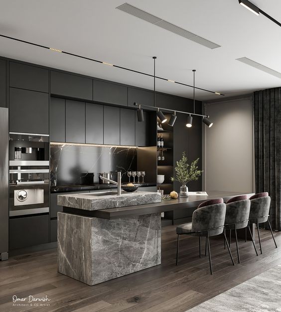 厨房由于功能性特别突出,首先光源照明强度要保证,在这里明亮的冷光源或者中性光源能够让厨房有亮堂堂的洁净感。