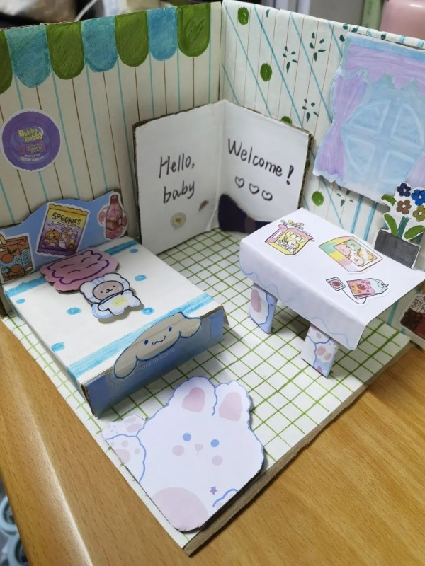 我们秉持着废物利用的理念,将废纸箱做成了一个温馨的小屋。如果爱有形状,那么它一定像房子。里面装满了爱,生活就有了意义。有了床,累的时候可以睡上甜甜的觉,满血复活;有了餐桌,生活也不再孤单,能够随时补充能量。我们需要远方,也需要休憩,总有一个小屋会是我们温暖的港湾。